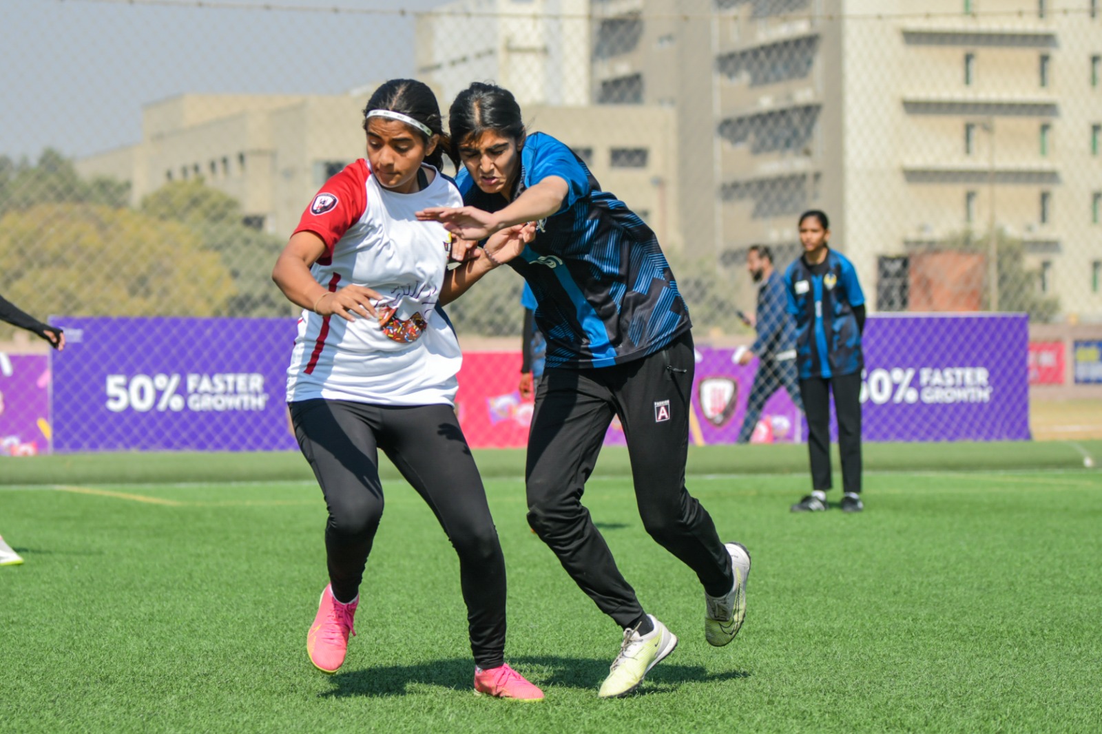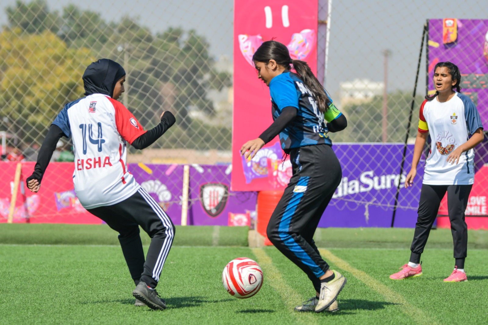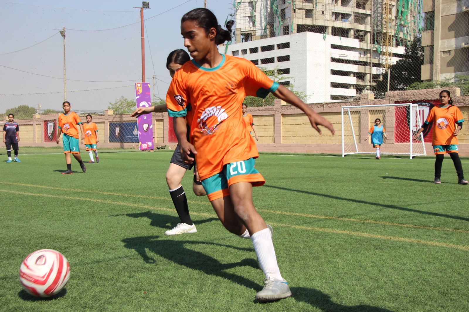 Harmain Shaukat of SMB Fatima Jinnah in action. She was also the Golden Boot Winner in the Senior Girls category.