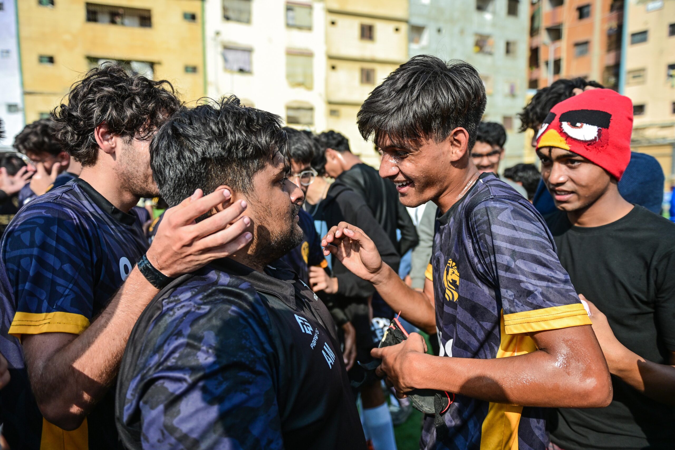 Coach Ali Messum of Credo College celebrating with his team after their first ever KUSC title.