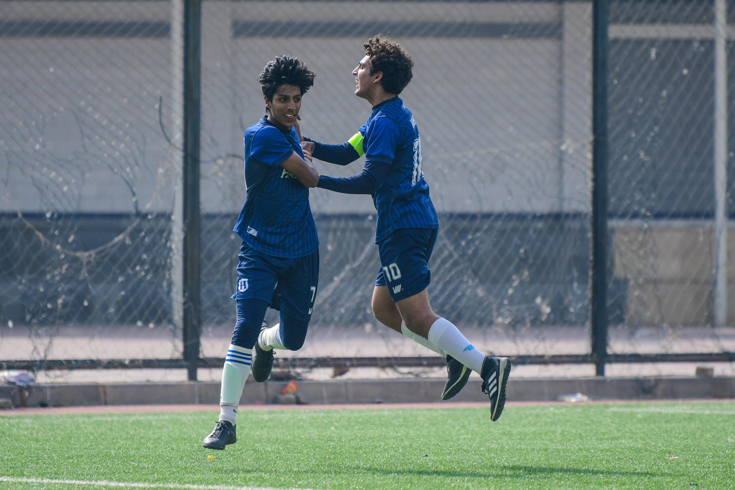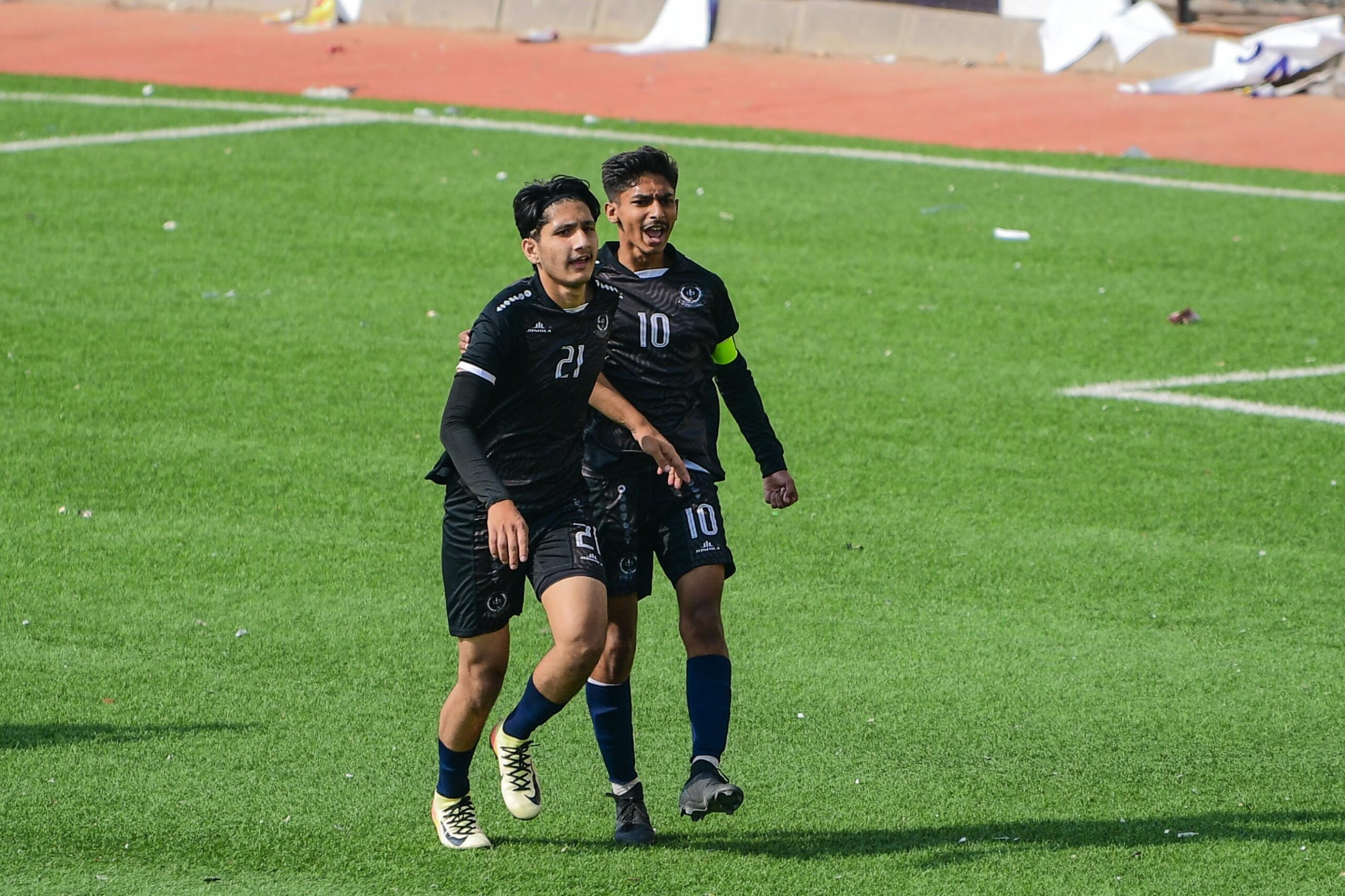 Mahad Faisal and Rayan Akhlaq celebrate their 3-0 win against Credo College.