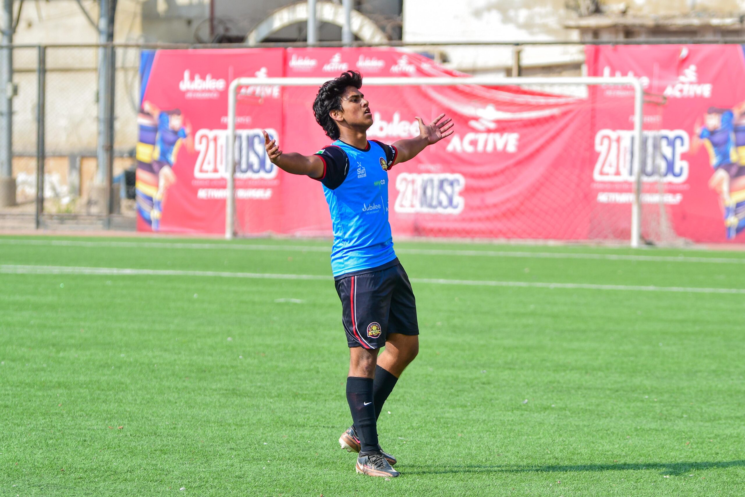 Abdul Ahad after slotting the ball home in the top corner, which would be the winner for Credo College.