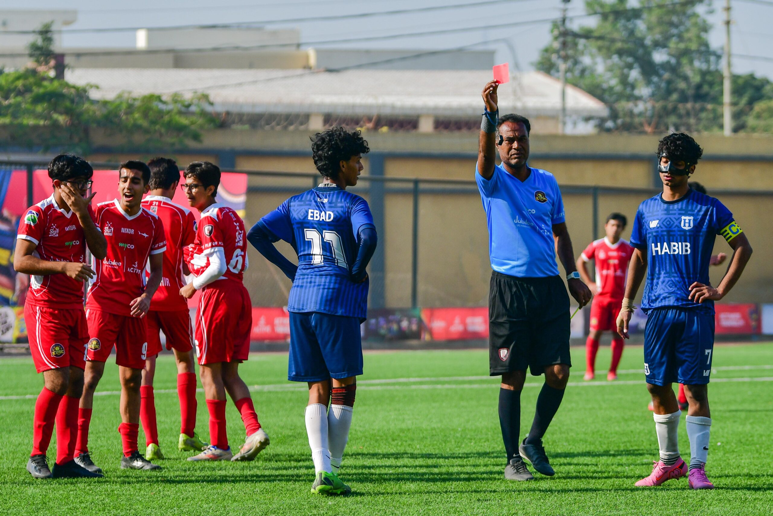 Nixor’s great form continued into the quarter-finals with the tournament top scorer Ashaar Rashid finding the back of the net multiple times. Things went from bad to worse for Habib Public School after their captain and talisman, Dilawar Humayun, was sent off following an altercation with the Nixor full-back, Abdullah Lohya.